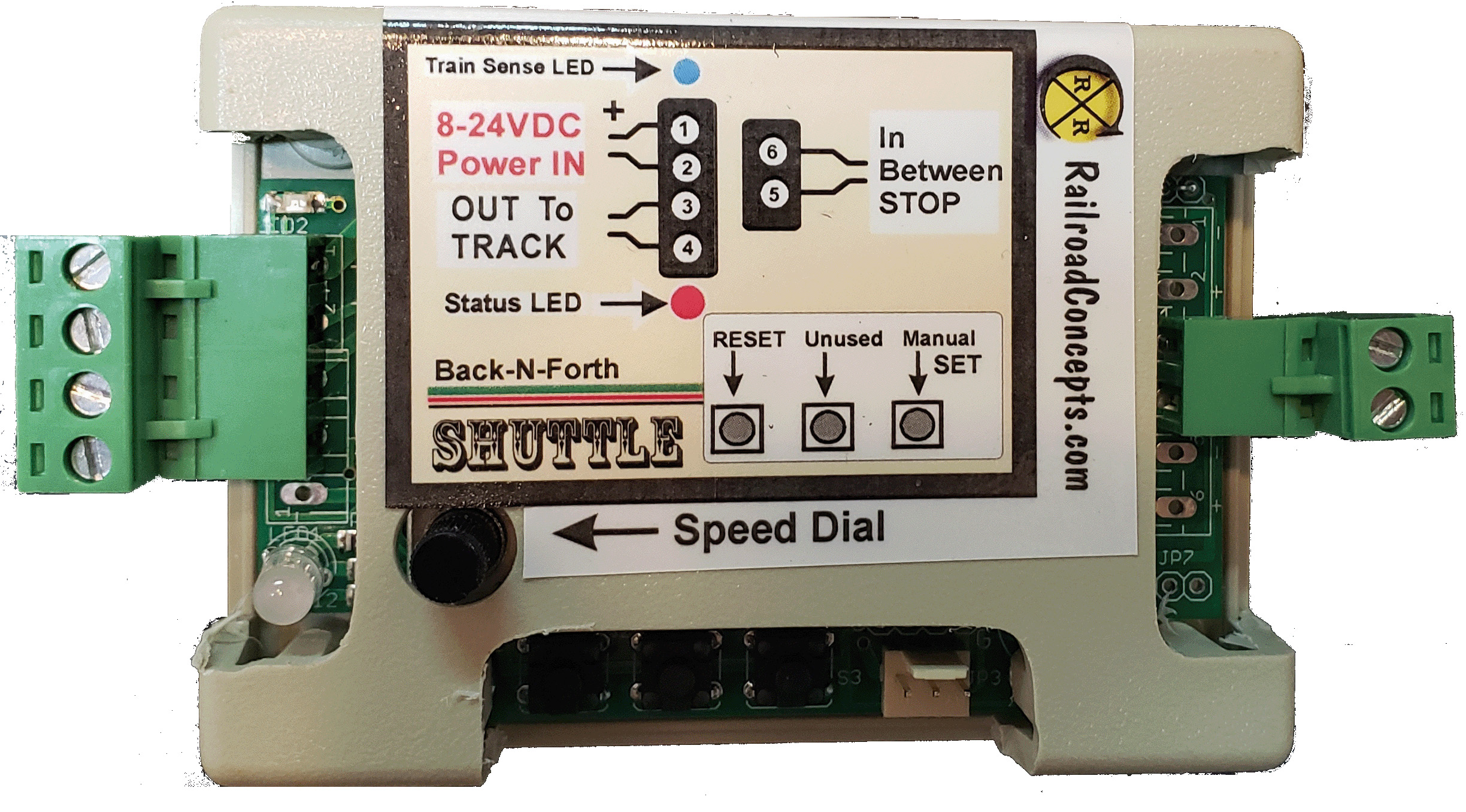 an accelerating/decelerating back-and-forth reversing unit with complete hands-off operations. The SHUTTLE will sense the ends of the track and self-adjust to provide a very realisitic slow down and then creep to a stop.