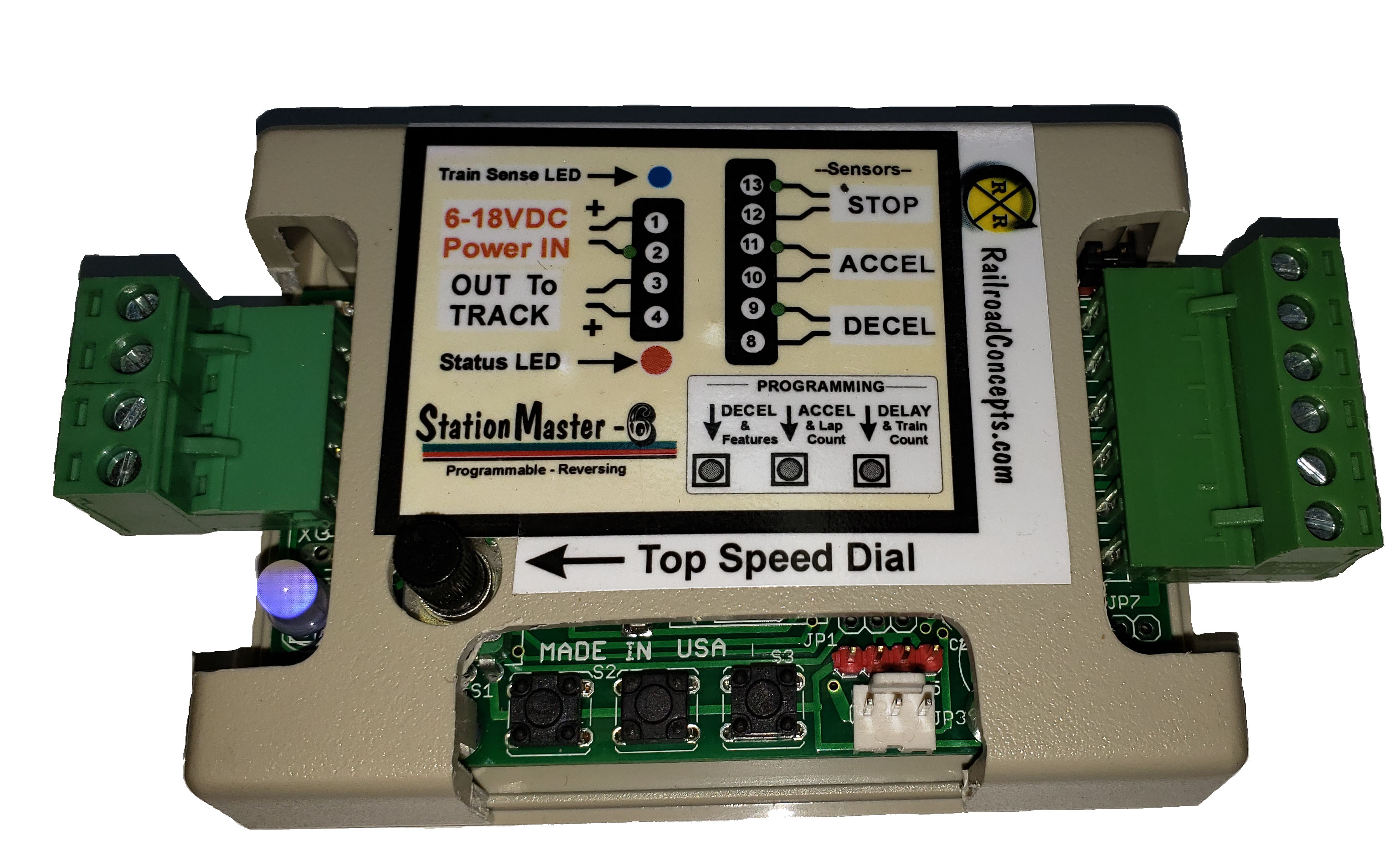 "ACCEL" sensor allows easy block control and passing siding hookups.